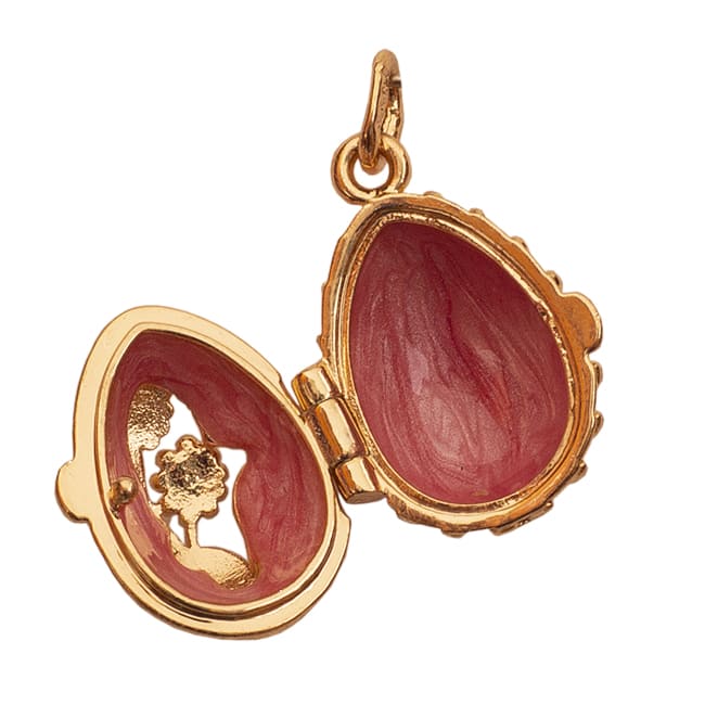 Подвеска сделана в форме пасхального яйца. Поверхность покрыта розовой эмалью, украшена стразами.