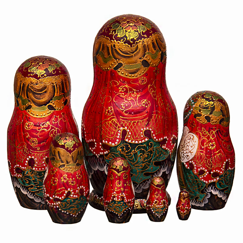 Поверхность матрешек без лака, матовая. Эффектный внешний вид.