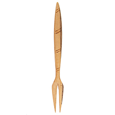 Основа изготовлена из массива ореха. У вилки два больших зубца. С помощью этого прибора, блюда, закуски и десерты раскладывают по тарелкам. Дерево грецкий орех отличается красочной палитрой и прочностью.