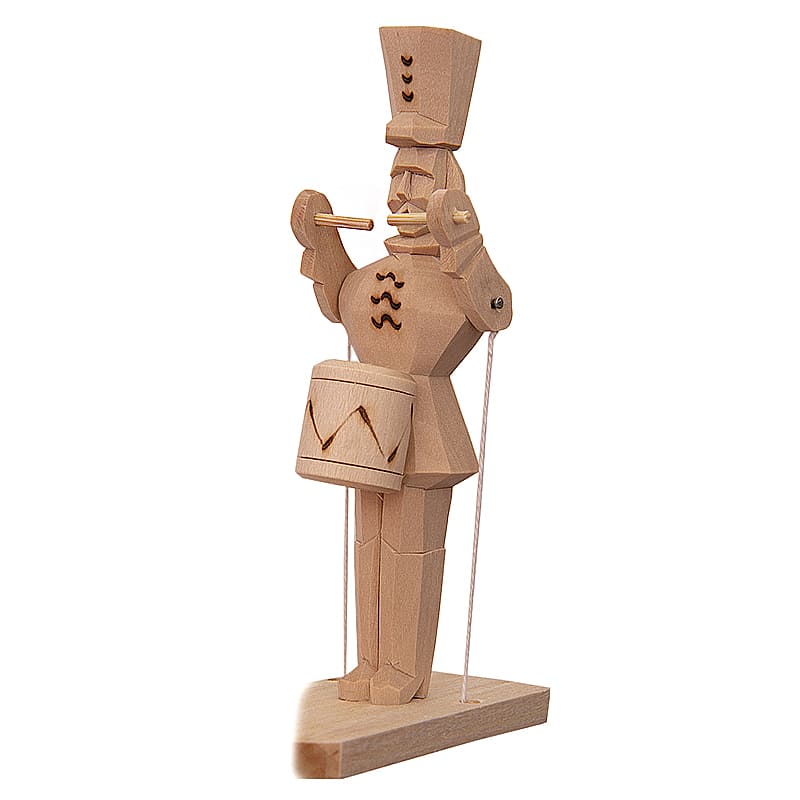Оригинальная игрушка ручной работы. Каждый элемент вырезан вручную из массива липы. Поверхность без декора. Внизу груз, который при покачивании приводит в движении руки фигуры и кажется, что солдат играет на барабане.