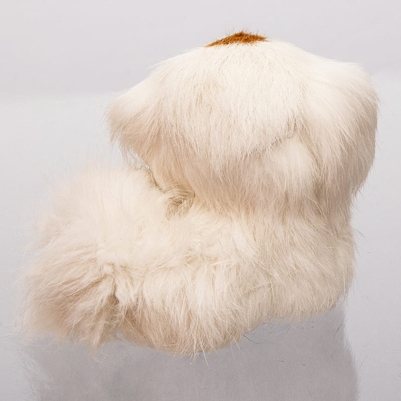 Колоритная игрушка, основа пластмассовая, поверхность покрыта мехом кролика бело-черного цвета. Глазки пластмассовые.