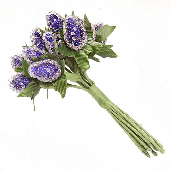 Букет из цветочков на зеленых стебельках. Цветы декорированы синем бисером.