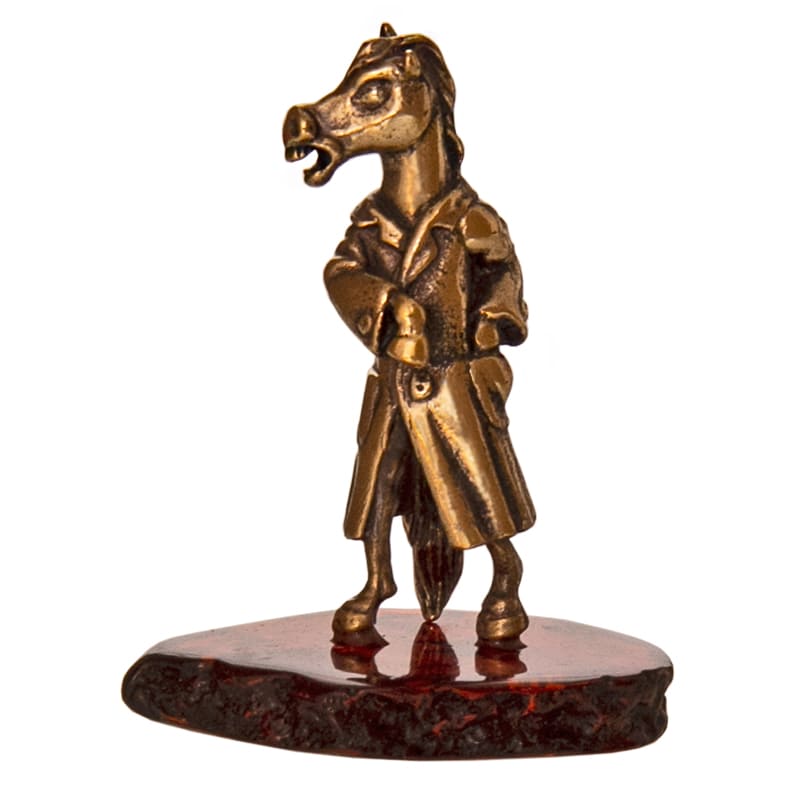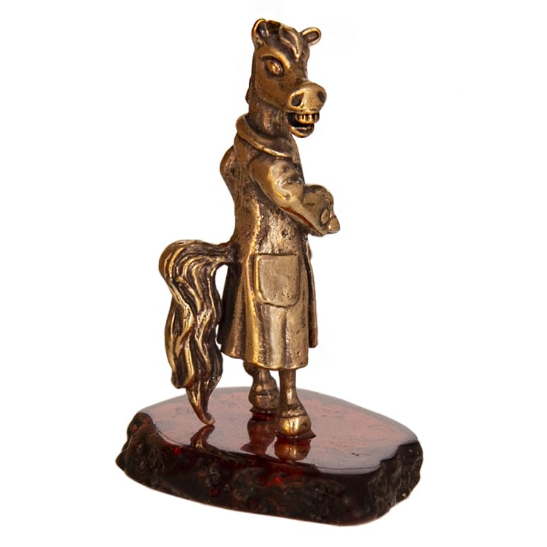 Стоимость фигурки на янтаре Конь в пальто 1100 рублей.