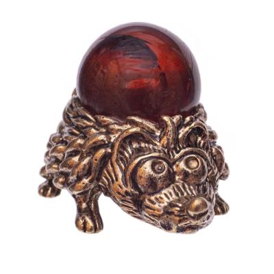 Фигурка - художественное литье. Сделана в форме маленького ежика, в центре шарик из янтаря.