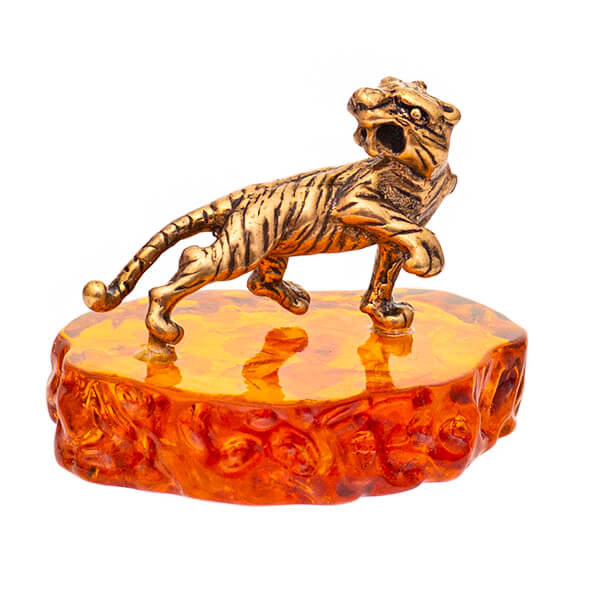 Тотем фигурка Тигр на янтарной подставке 3,5 х 2 см