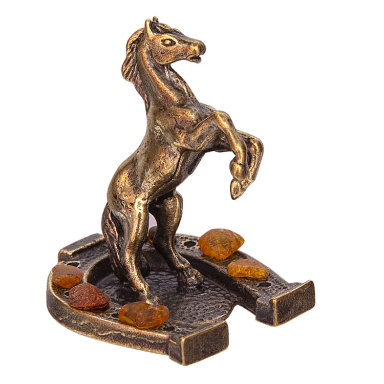 Статуэтка с янтарем Лошадка на подкове 4 см