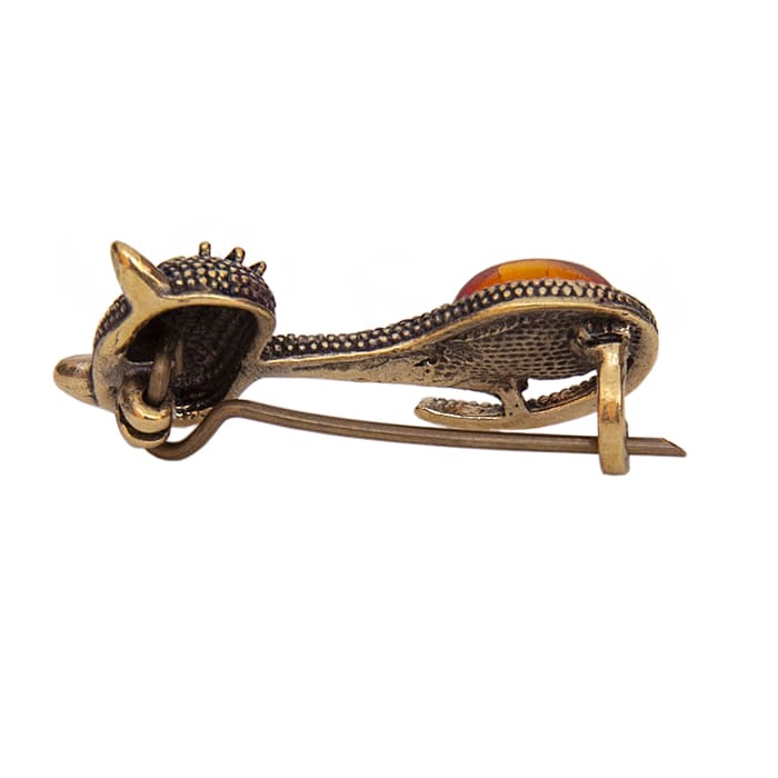 Красивая, элегантная брошь в форме котика, современный дизайн. Вставка из натурального янтаря.