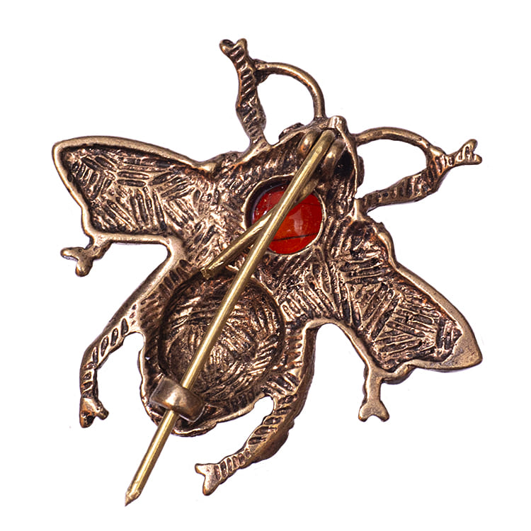 Брошь декоративная с янтарем Пчелка 3,5 х 3 см