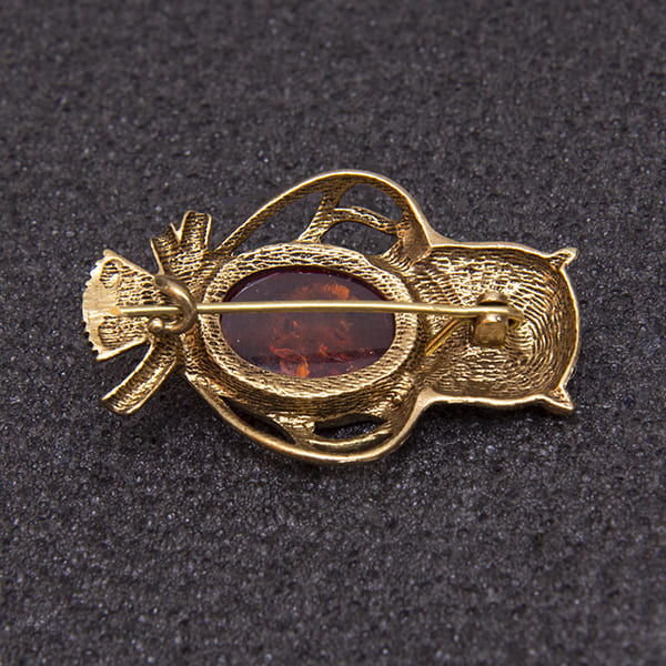 Красивая, элегантная брошь в форме совы, современный дизайн. Вставка из натурального янтаря.