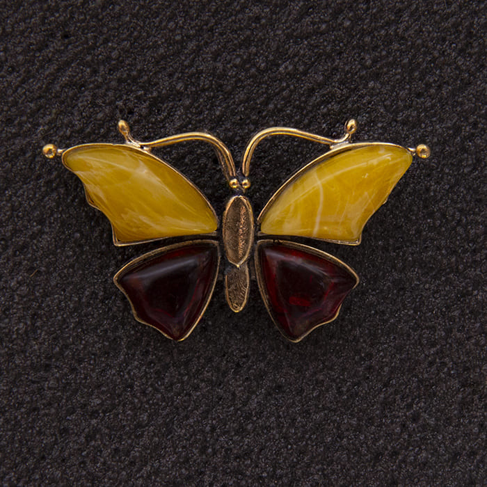 Брошь с янтарем Бабочка: