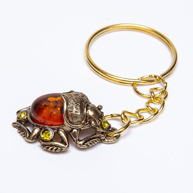- миниатюрный литой жук скарабей из латуни с янтарной вставкой