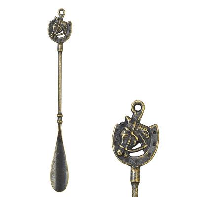 Ложка из латуни, с длинной ручкой. Верхняя часть ручки сделана в форме головы лошади в подкове.