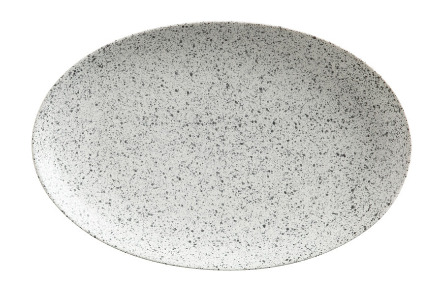 Блюдо из серии Икра белого цвета с черными вкраплениями. Коллекция отличается эффектным внешним видом, современный стиль и оригинальная техника декорирования с помощью контрастных вкраплений. Предметы из серии “Икра” подходят для ежедневного использования и праздничных торжеств.