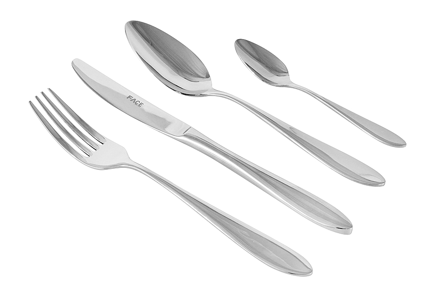 Набор столовых приборов португальской фирмы Face. Коллекция Jasmine отличается высоким качеством металла и современным дизайном. Рабочая часть и ручки блестящие.