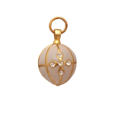 Подвеска из бижутерного сплава. Сделана в форме земного шара. В центре рельефное изображение голубя. На обороте крест из страз. Голубь олицетворение Святого Духа, парящего над землей.