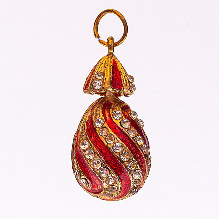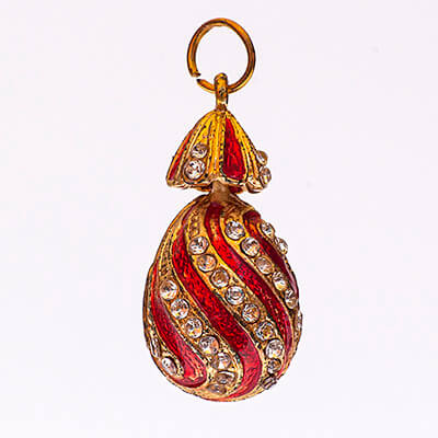 Данная подвеска является авторской работой, традиционный русский стиль. Поверхность покрыта красной эмалью, украшена рельефным узором из прозрачных страз.