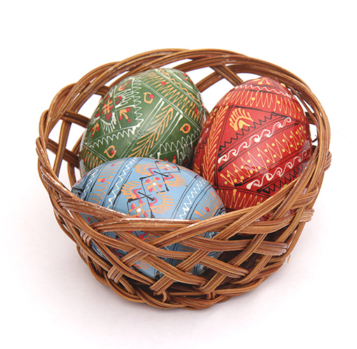 Оригинальный комплект из трех яиц писанок и корзиночки.