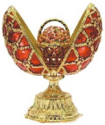 Оригинальный стиль - пасхальное яйцо сделано как шкатулка. Поверхность покрыта красной эмалью. Основа из бижутерного сплава. Яйцо открывается и внутри вас ждет сюрприз - изысканный букет цветов, который никогда не завянет.