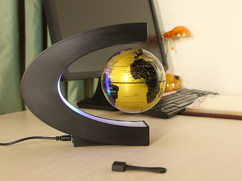 Устанавливается только на гладкой, ровной поверхности, иначе не будет работать. Подключается к электросети. При включении, глобус парит сам по себе, удивительное зрелище. Глобус может вращаться по часовой стенке или против, в зависимости от направления вращения.