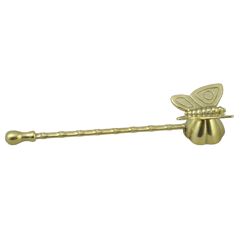 Эффектный гаситель для свечей. Удобная ручка, навершие гасителя сделана в форме бабочки. Металл латунь золотого цвета.