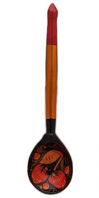 Ложку можно подарить как сувенир из России. Комплект дополняют различной хохломской посудой.