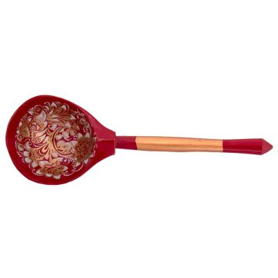 Традиционная хохломская ложка - красный фон, узор - золотые цветы. Сделана по настоящей хохломской технологии в Нижегородской области. Для создания формы мастера взяли великолепный массив березы, отлично просушенный, подобранный для каждой ложки так, чтобы не было сколов или трещин, чтобы изделие прослужило максимально долго. Роспись выполнена вручную талантливыми художниками, узоры - в ассортименте. Для покрытия был использован безопасный пищевой лак, поэтому эти ложки универсальны в быту.