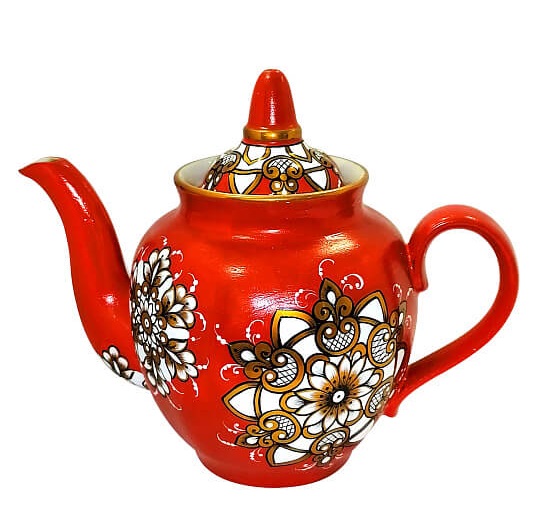 Основа сделана из фарфора. Затем покрыта эмалью. Расписной чайник подходит для ежедневного использования.