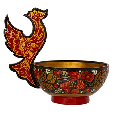 Деревянная конфетница Хохлома Жар-птица 14 х 17 см