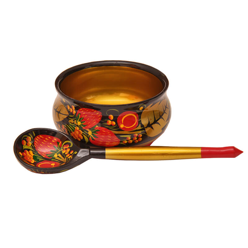 Универсальный дизайн - традиционный узор который будет сочетаться с другими хохломскими изделиями.