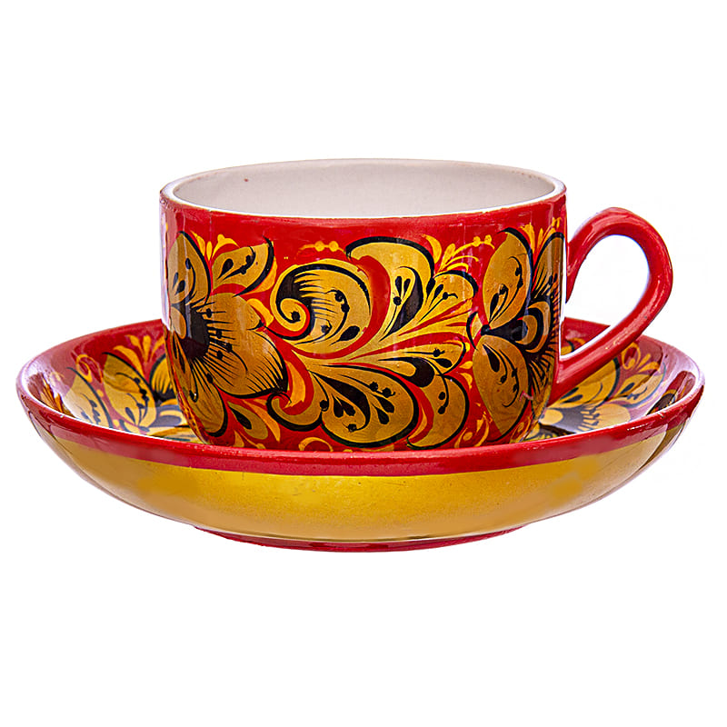 Фарфоровый чайный сервиз Хохлома "Кудрина" 14 предметов