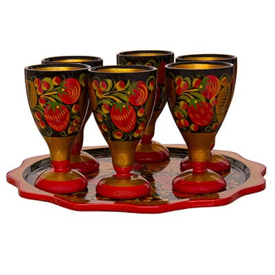 Стоимость хохломского набора для вина Каприз 2900 рублей.