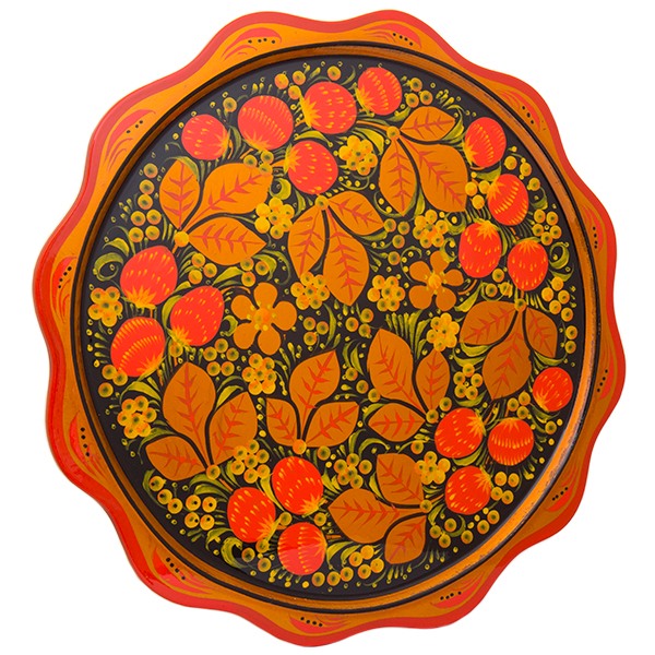 Для подачи блюд - русских первых блюд - ухи, щей, каши, блинов. На хохломском подносе отлично смотрятся варенье, мед. Традиционный узор повторяется на других предметах, поэтому поднос будет хорошо сочетаться с бокалами или хохломскими кружками.