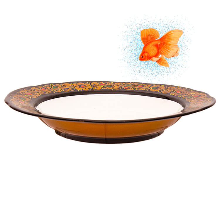 Несколько тарелок можно преподнести в качестве сувенира из России. Хохломской фарфор удобен и практичен. Красиво смотрится.