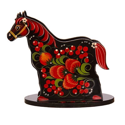 Хохломская салфетница с узором Лошадка 12,5 х 13 см