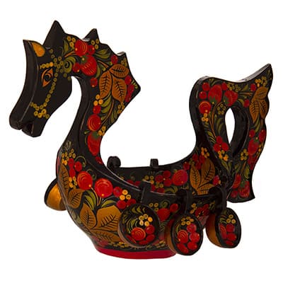 Особенности ладьи Лошадь с хохломским орнаментом: