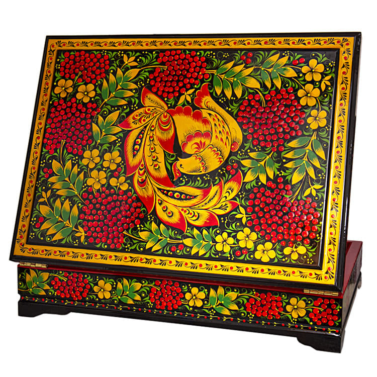 Стоимость хохломской шкатулки для документов 17880 рублей. Оплата по Москве и Санкт-Петербургу, а также Московской области возможна наличными и картой при получении. При заказе в регионы, оплата производится картой на сайте. Предоплата 100%.