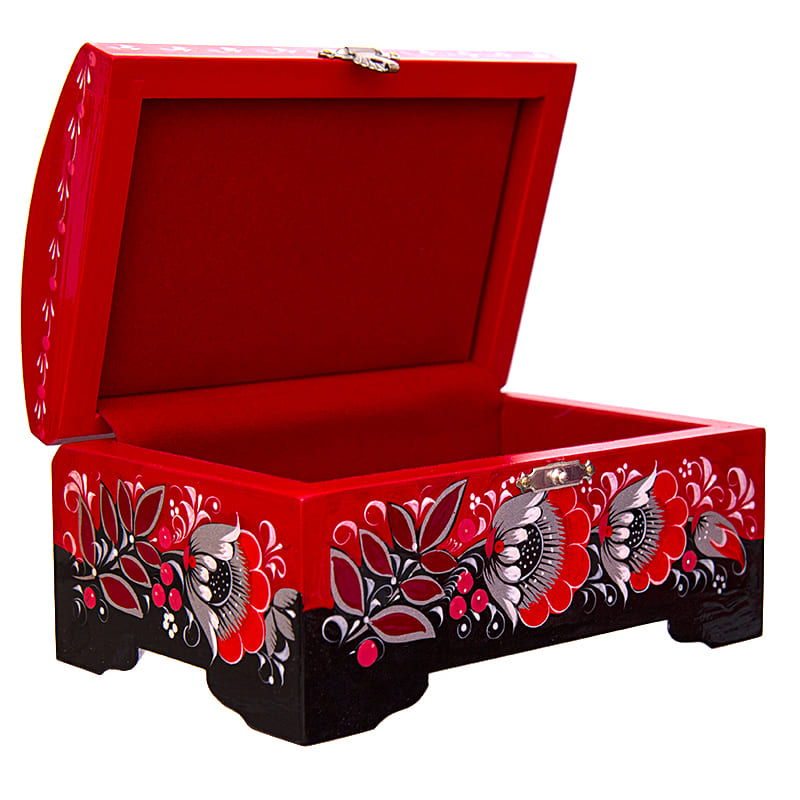 Великолепный подарок в русском стиле. Характерная черта - авторская роспись - традиционный узор. Внутри отделана красным велюром.