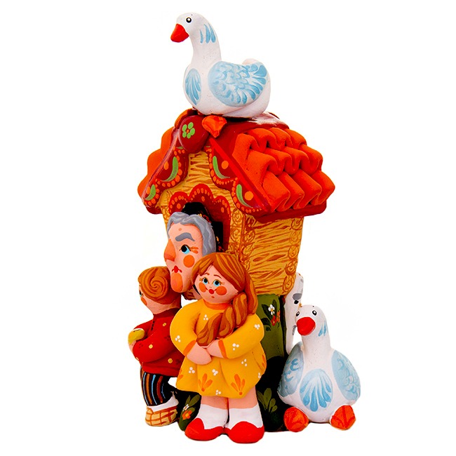 - статуэтка сделана как эпизод из сказки “Гуси лебеди”