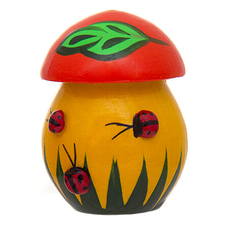 Магнит фигурный сделан в форме гриба подосиновика. Основа выточена из дерева. Поверхность расписана художником. Ножка желтая, шляпка оранжевая с листочком. В лесном грибе узнается подосиновик - любимый подарок грибников.