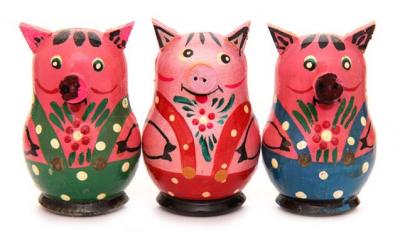 Три магнита в форме поросёнка, роспись авторская. Основа выточена из дерева.