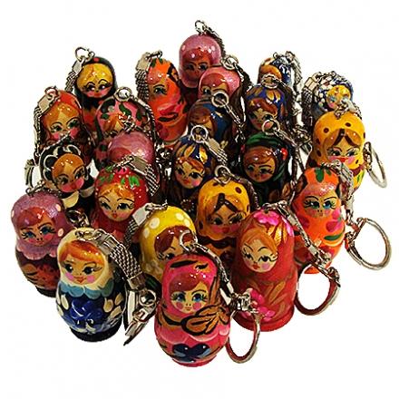 Набор расписных брелоков для ключей 50 штук. Каждая матрешка выточена из массива березы, высотой 4 см. Роспись выполнена масляными красками вручную, поверхность покрыта лаком. В наборе самые разные разноцветные матрешки, роспись выполнена в стиле гжель, под хохлому или просто яркие цветы. Матрешки разных цветов - красная, желтая, зеленая, синяя.
