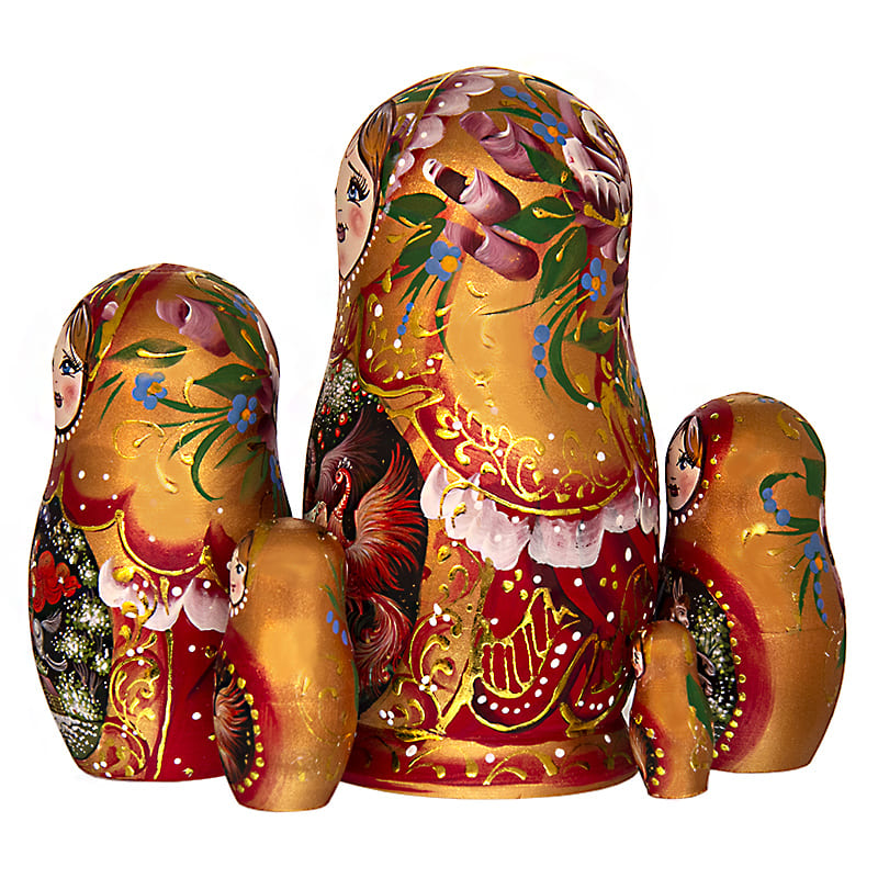 Матрешка авторская миниатюра Золотая Жар-птица 5 мест 16 см