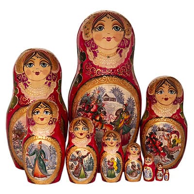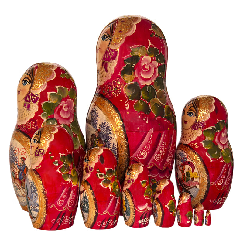 Авторская матрешка 10 мест "Русские сюжеты" 27 см