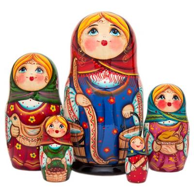 Матрешка расписана вручную. Матрешки декорированы в ярких цветах. На головах русские шали. Очень милые лица. Хорошая, округлая форма, колоритная роспись.