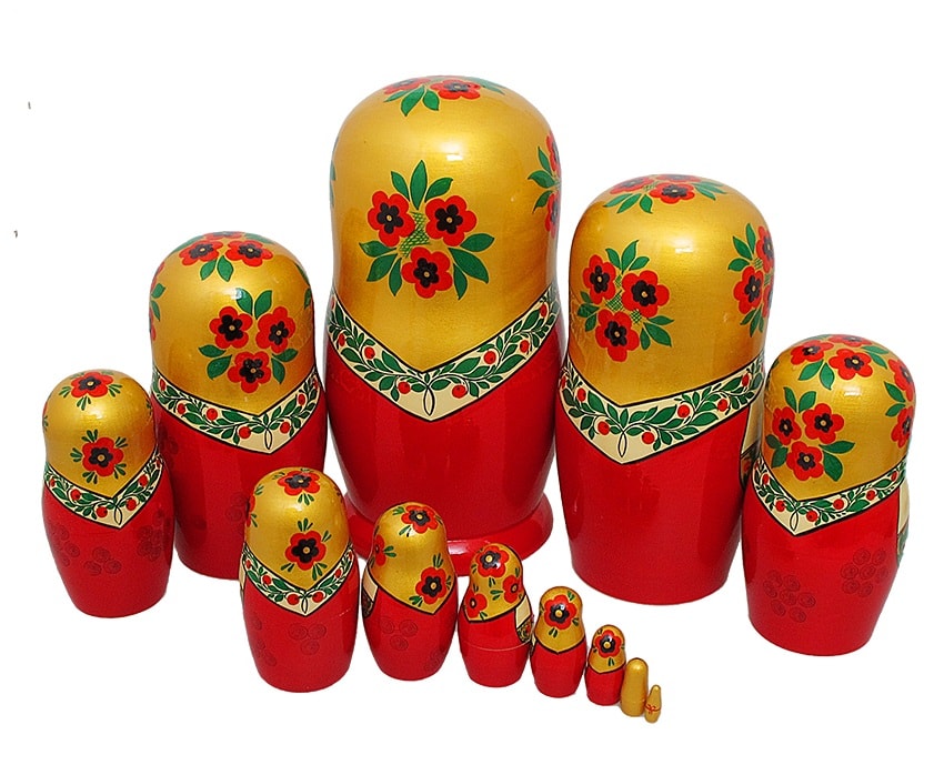 Основа сделана из массива липы, роспись выполнена профессиональным художником масляными красками. В комплекте 12 куколок. Отличный вариант для тех, кто хочет купить оригинальную и дорогую матрешку.