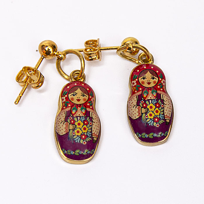 Серьги гвоздики Матрешки из ювелирного сплава: