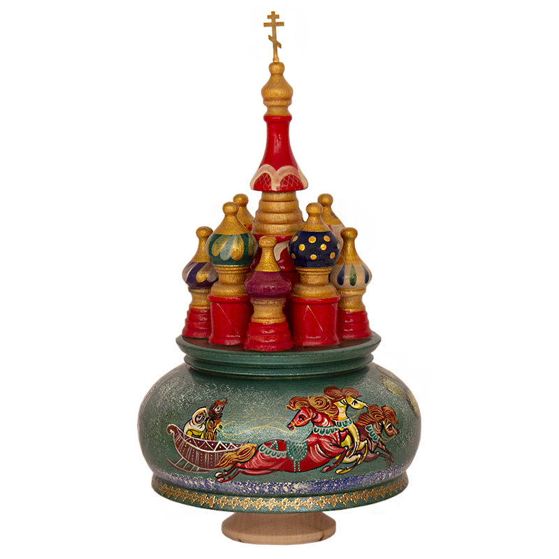 Основа сделана из дерева. Поверхность раскрашена масляными красками. Форма миниатюрный храм с разноцветными башенками.
