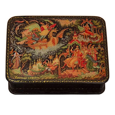 Шкатулка лаковая миниатюра "Русские сказки" 11 х 7,5 см