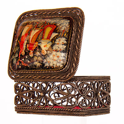 Шкатулка скань Гуляние автор Ходов М. 5 х 4,5 см