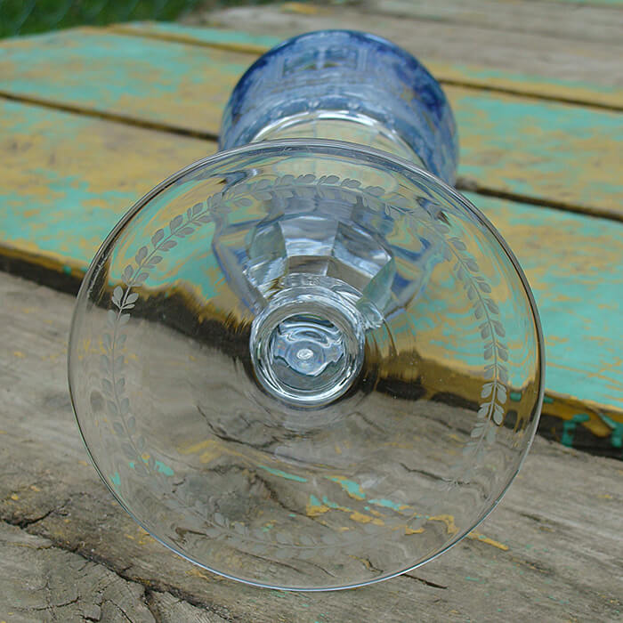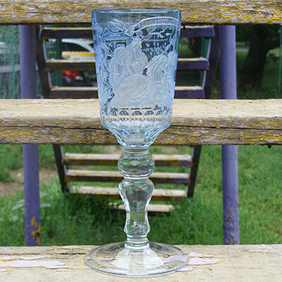 Хрустальный кубок ручной работы, форма - петровская. Кубок сделан как копия хрустальных потиров эпохи Петра I. Кубок сделан из двойного хрустального стекла. Внешняя сторона голубого цвета, внутренняя прозрачная.